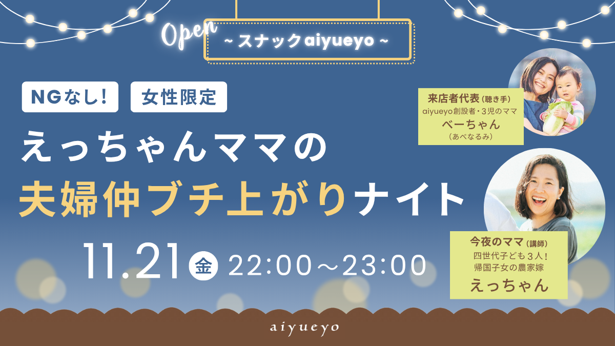 「〜スナックaiyueyo〜NGなし!えっちゃんママの夫婦仲ブチ上がりナイト」開催のお知らせ