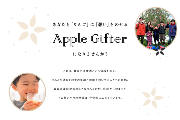 Apple Giftersは、農家と消費者という垣根を超え、りんごを通じて相手の笑顔と健康を思いやる人たちの総称。