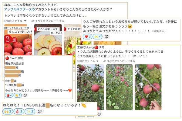 マルシェで買ってくださった方々が、目を輝かせ、おいしい、おいしいと感想を寄せてくれる姿をみて、「本当においしいりんごを贈る人になりたい」と思い、継いでからはチャレンジングであった「適期栽培(食べていただく瞬間に最もおいしいりんごをお届けする)」をはじめ、農家ではなく「Apple Gifter(りんごの贈り人)」と名乗りはじめました。
