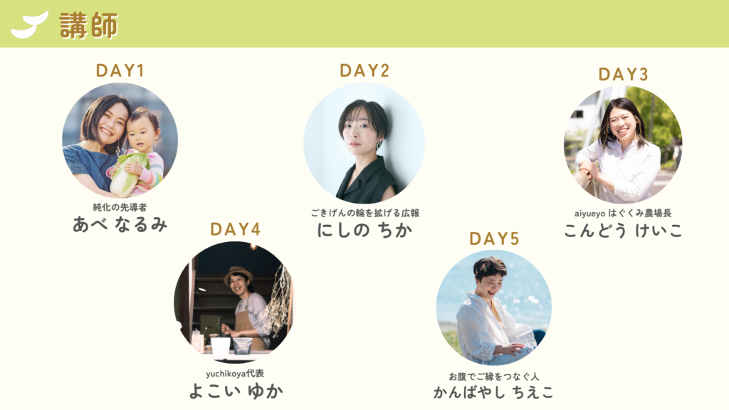aiyueyoの創設者あべなるみをはじめ、ナエドコで見つけた「自分らしさ」を軸に暮らし、働くチームaiyueyoのメンバーを講師としてお迎えします。