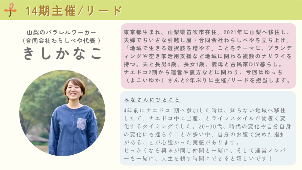 ナエドコ14期|心に正直に、暮らしと働きを選びなおす3ヶ月