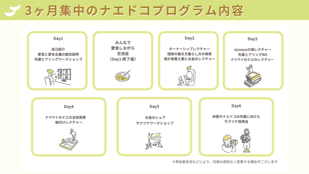 今回募集するナエドコ14期では特に、こんなことを大事にします。