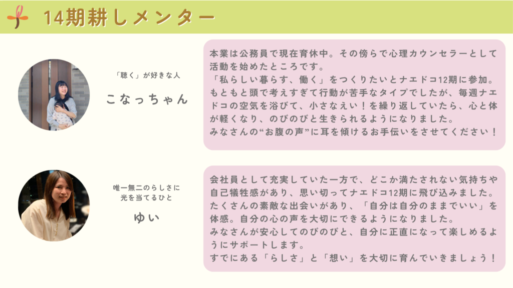 2025年に開講したナエドコ12期に参加してくださった方々のお声を紹介します。