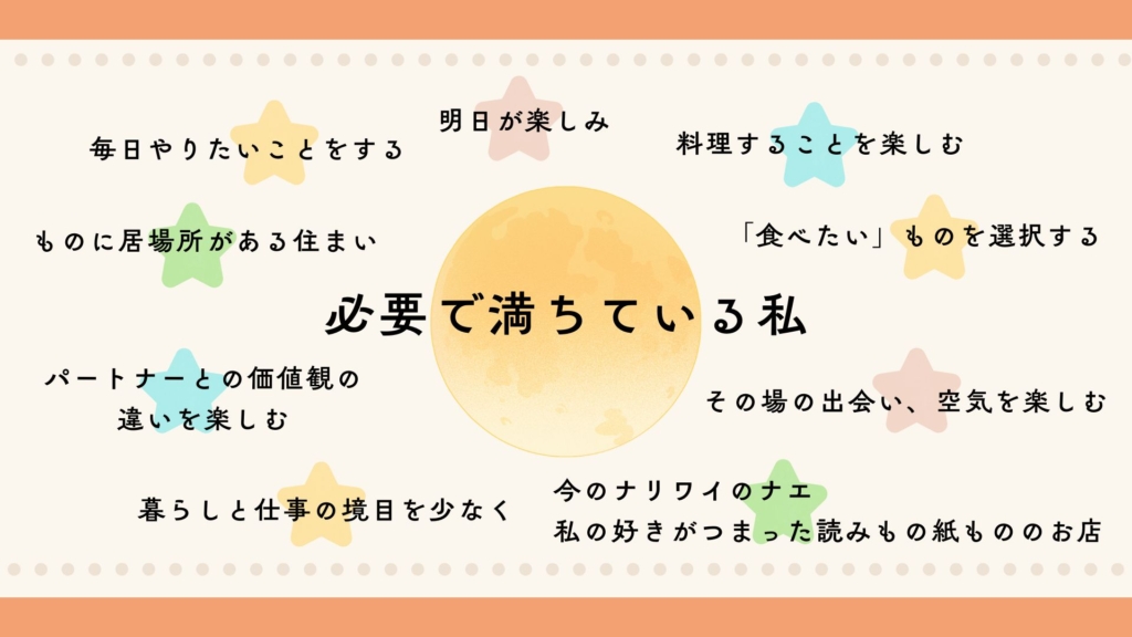 心が感じることをやった先に必要で満ちていて、足るを知っているわたしがいたらいいなと今は感じています。