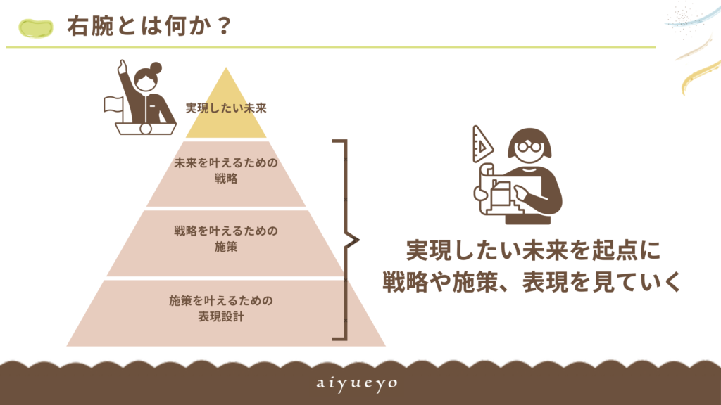 「右腕とは、経営者が意思決定していくための『サポート』をする存在です」