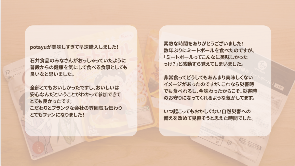 非常食が美味しいことは、もしもの「安心」になる-石井食品の非常食・常温食 めでたべ会レポート-