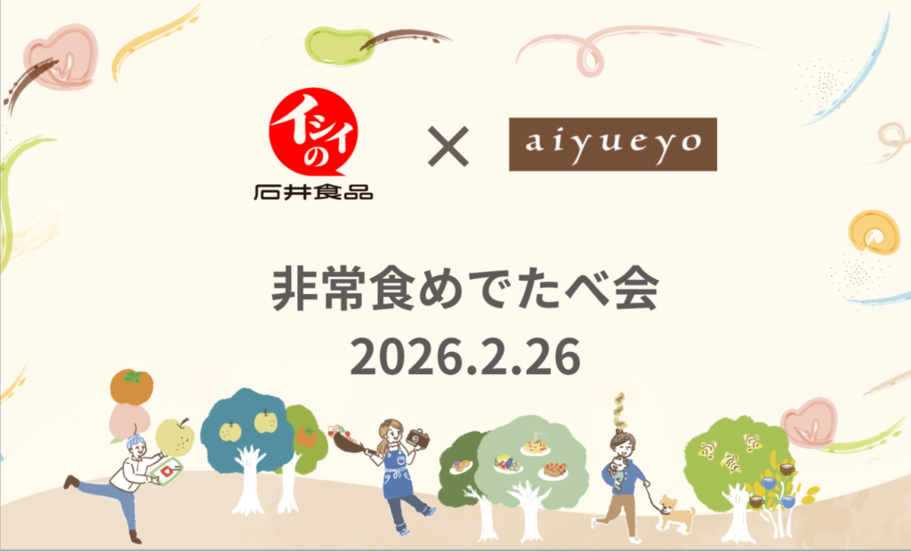 東日本大震災から15年。再びの防災意識の高まりを受け、このたび、らしさを循環させるワークプレイスコミュニティである、一般社団法人aiyueyo(あいゆえよ)と、創業80年を超える老舗食品メーカー・石井食品のオンラインストア「ダイレクトイシイ」がコラボし、『非常食・常温食めでたべ会』をオンラインで開催しました。